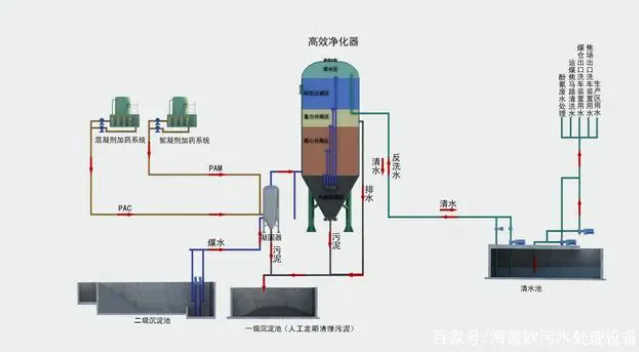 在高懸浮物污水處理中,HPO-XL型高效污水凈化器顯示了較大的技術(shù)優(yōu)勢(shì)。它無須設(shè)置預(yù)沉池,可以快速連續(xù)高效地將 SS≤5000mg/L 的污水凈化到 5~30mg/L,該技術(shù)最高可以處理 SS≤10000mg/L 的污水,為高濃度含煤污水、灰渣水、礦井污水、砂石骨料沖洗污水、施工污水、高懸浮物污水處理開辟了一條新途徑。